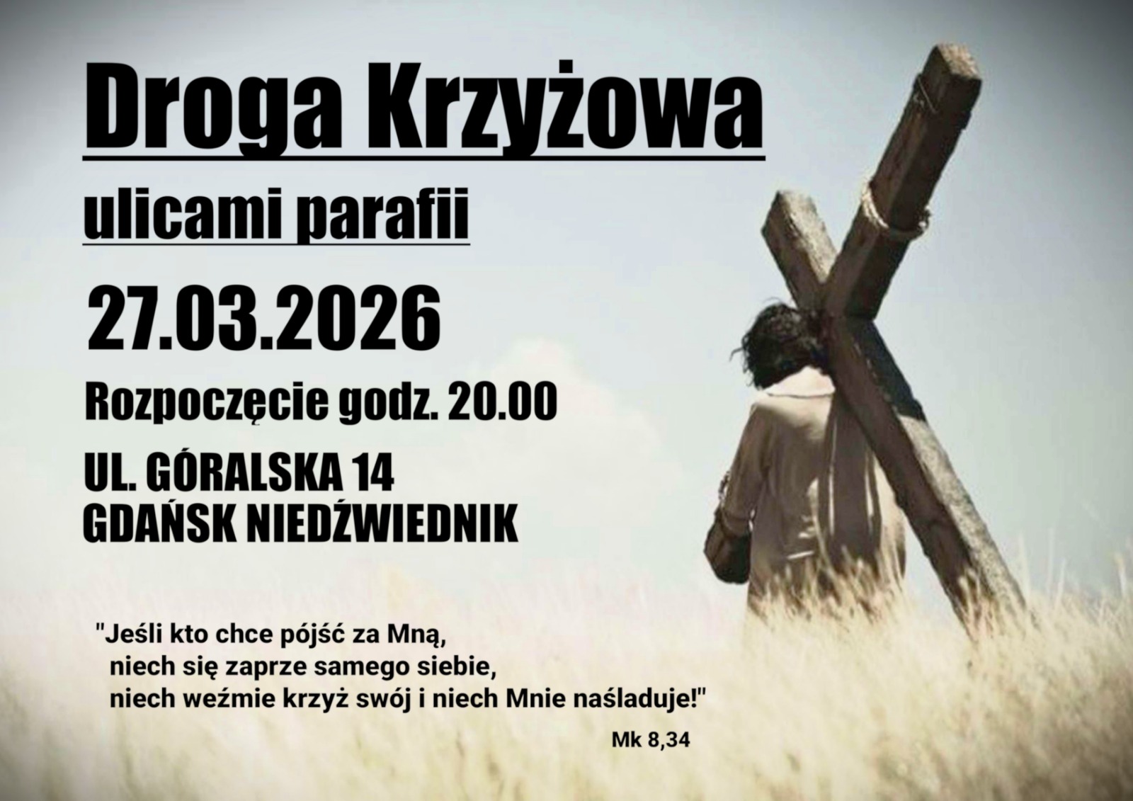 W piątek V tygodnia Wielkiego Postu uczestniczyliśmy w nabożeństwie drogi krzyżowej na osiedlu Niedźwiednik. Naszej modlitwie przewodniczył ks. Proboszcz, a rozważania i śpiew przygotowała oraz prowadziła wspólnota Domowego Kościoła.